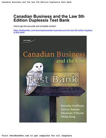 Download CANADIAN BUSINESS LAW 5TH EDITION DUPLESSIS PDF BOOK Doc